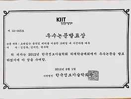 “프레임간 움직임 벡터를 이용한 프레임내 시선이동 예측”, 한국정보기술학회 하계학술대회 논문집, Vol. 15, no. 1, pp. 120-123, Jun. 2012. “변환계수의 LSB를 이용한 강인한 워터마킹 연구”, 한국정보기술학회 하계학술대회 논문집, Vol. 15, no. 1, pp. 224-247, Jun. 2012. “디지털 시네마의 모션베이스 제어를 위한 움직임정보 추출 기법,” IPIU2012, 영상처리와 이해에 관한 워크샵, Feb. 2012. "DCT변환 계수를 이용한 효과적인 영상 축소/확대 기법," 2010년도 한국정보기술학회 IT기반 콘텐츠 융합기술 워크숍 및 하계종합학술대회논문집, pp. 40-43, May 2010. "계층별 선택적 암호화를 이용한 워터마킹과 스크램블링 기술,..